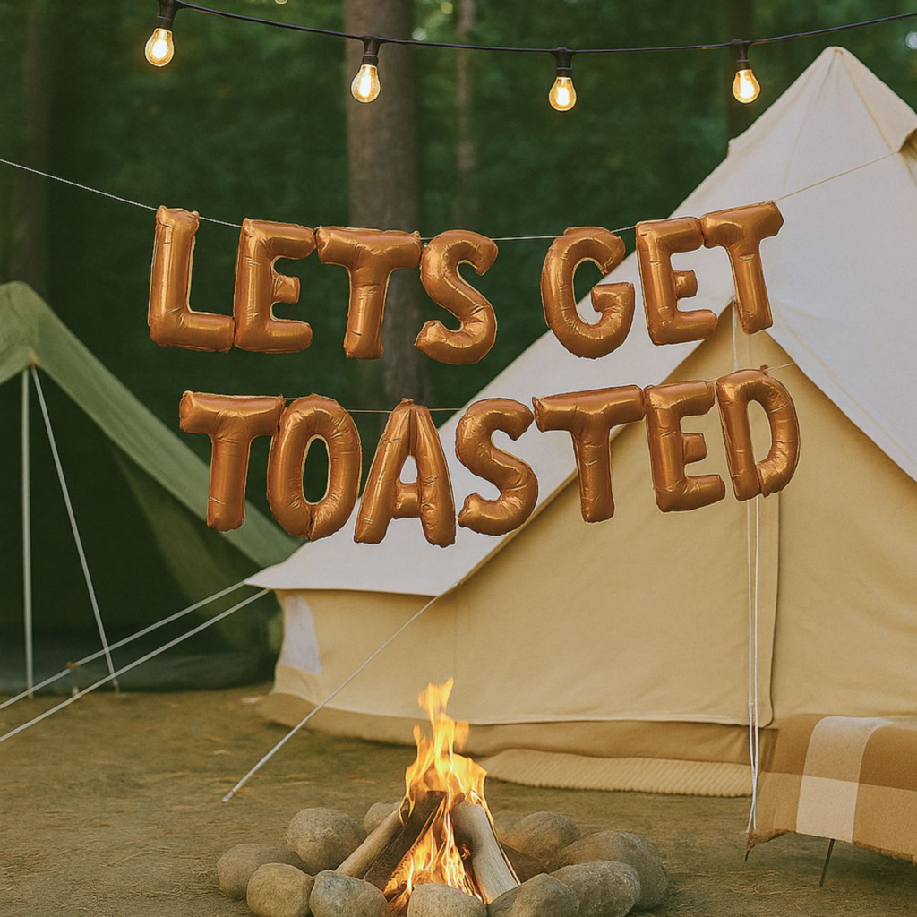 Camp Bach is all about nostalgic fun with a glam twist. Think forest greens, camp badges, and touches of Beverly Hills pink — cozy but elevated. Mix rustic details like wood textures and enamelware with luxe accents like personalized signage, velvet ribbons, and shimmer to create a “glamping chic” vibe that’s playful and polished.
