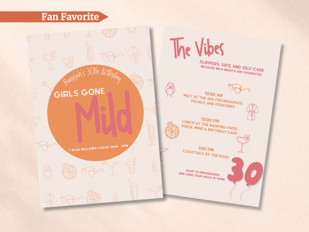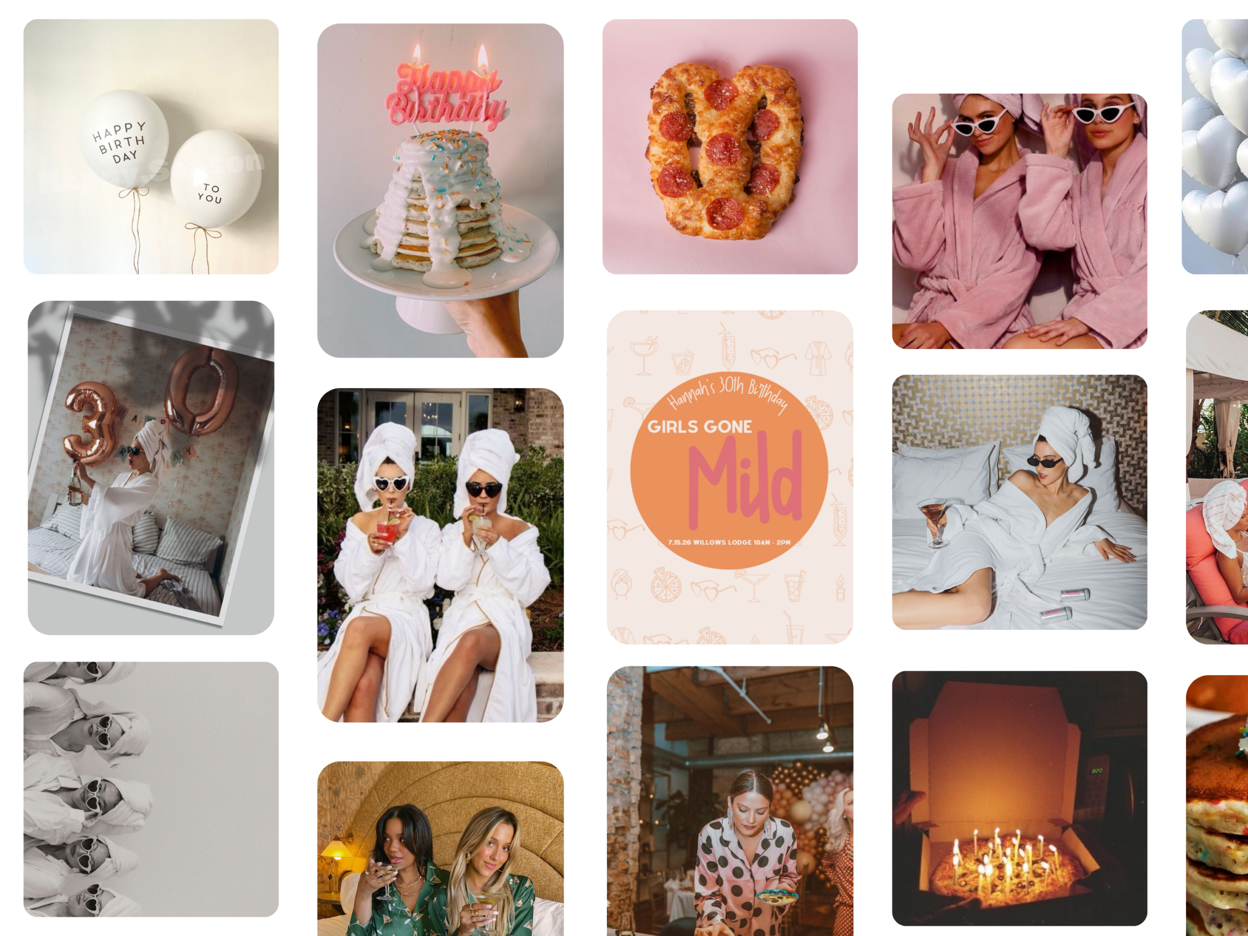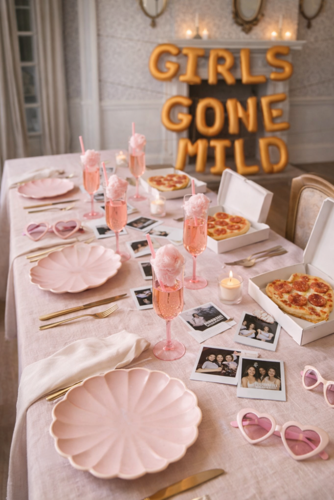 The Girls Gone Mild theme is all about cozy charm with a playful twist. Think soft pastels, feather-trimmed pajamas, and matching sets made for lounging in style. It’s perfect for a girls’ night in, pajama brunch, or relaxed birthday celebration that still feels curated and chic.