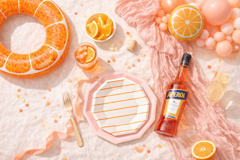 The Love at First Spritz theme is playful, bright, and inspired by Italian summer afternoons. Think Aperol hues, citrus accents, and endless bubbly vibes. It’s perfect for a sun-soaked bachelorette, bridal shower brunch, or girls’ getaway that feels chic and carefree.