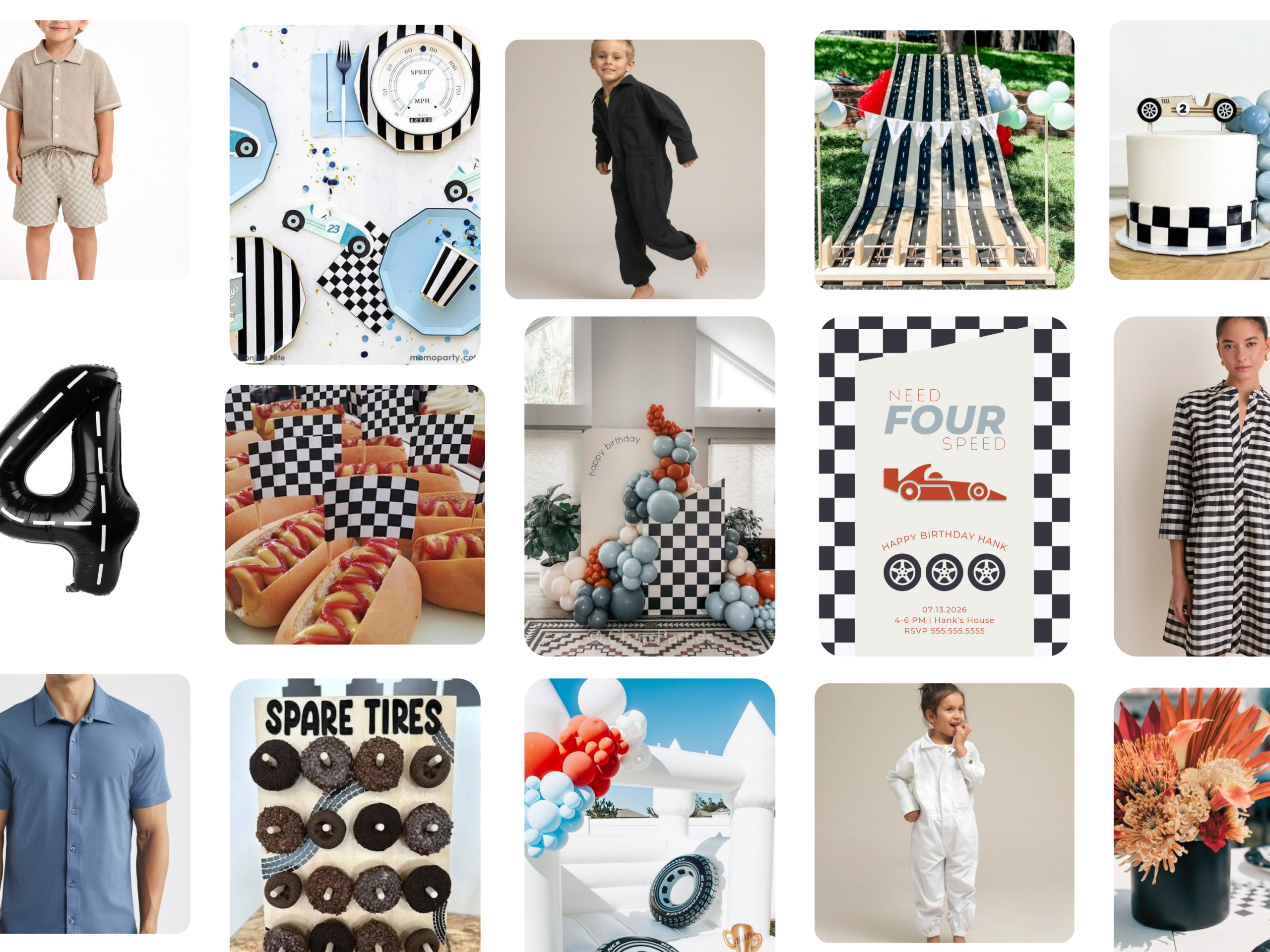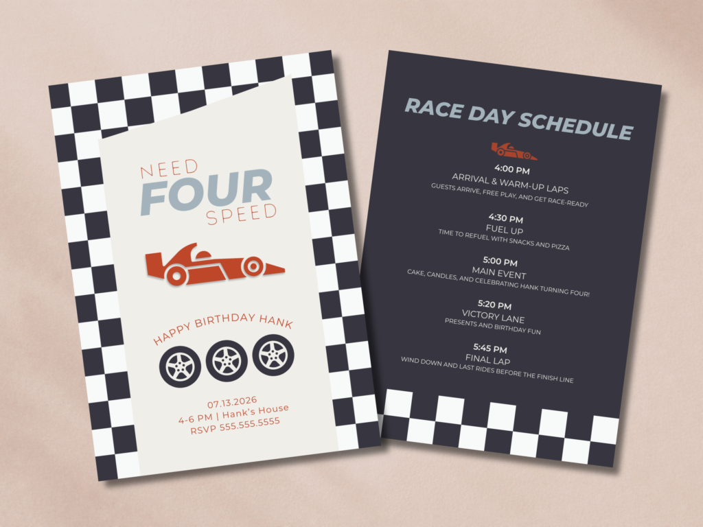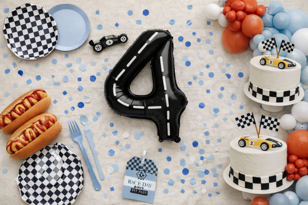 The Need Four Speed theme brings bold, race-day energy to a modern birthday celebration. Checkered details, sleek silhouettes, and playful pops of color set the scene for a party that feels both elevated and fun—perfect for celebrating your little racer in style.
