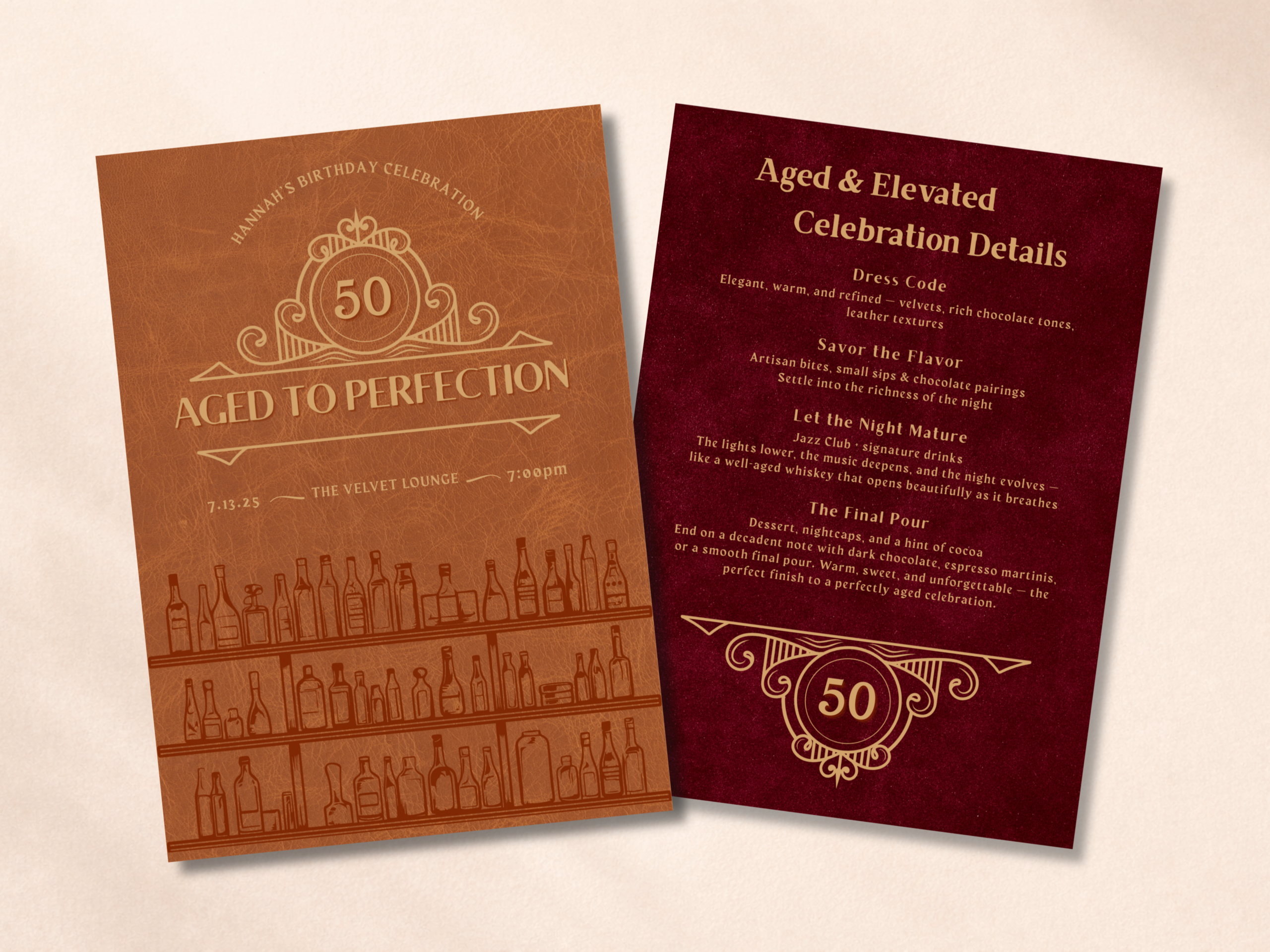 Aged to Perfection Invitation, 50th Birthday Whiskey Invite, Leather & Bourbon Theme, Masculine Birthday Party, Canva Template