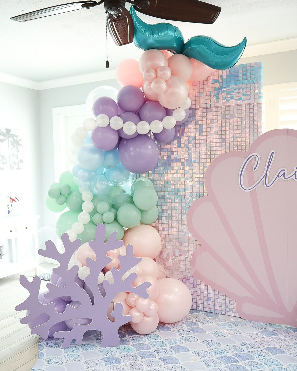 Mermaid Balloon Garland Arch Kit,145pcs Purple Pastel Pink light Blue Balloons with Mermaid Tails Foil Balloons