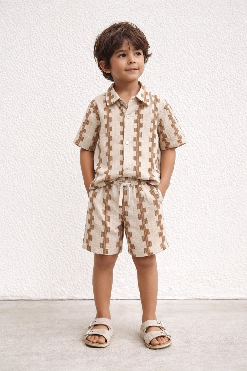 Shirt with a shirt collar and short sleeves. Front button closure.
